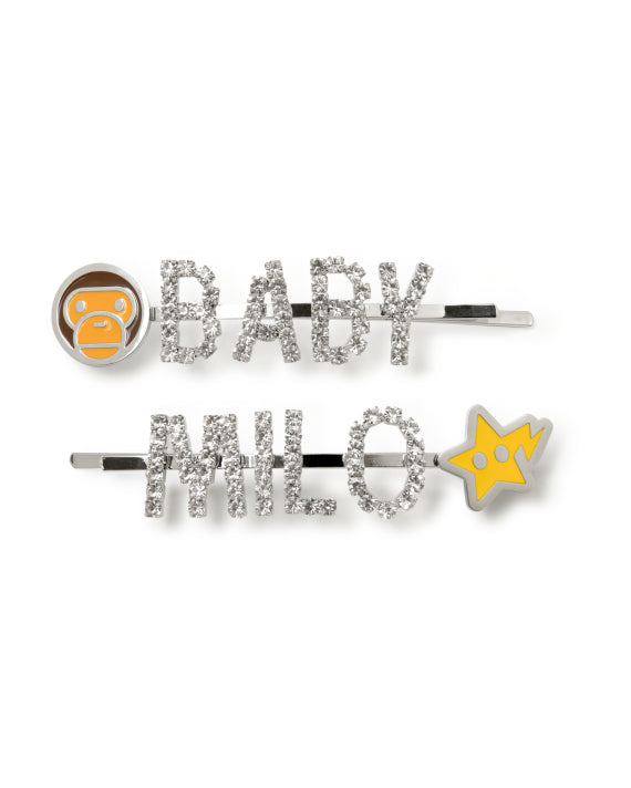 Elevate your hair game with the BABY MILO RHINESTONE HAIR PIN SET – the perfect balance of sparkle, style, and iconic branding! ✨