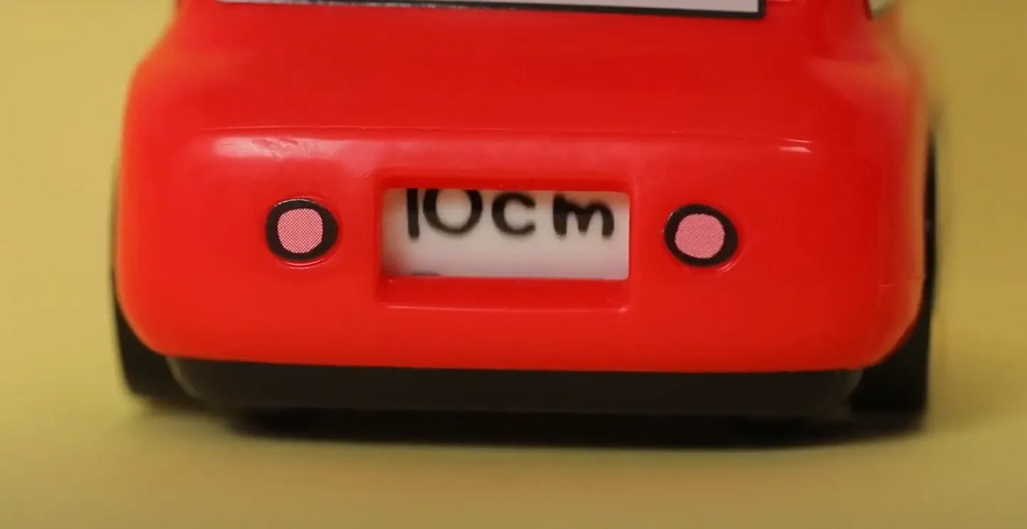 Details: The measured length is displayed in centimeters in a window on the back of the car.