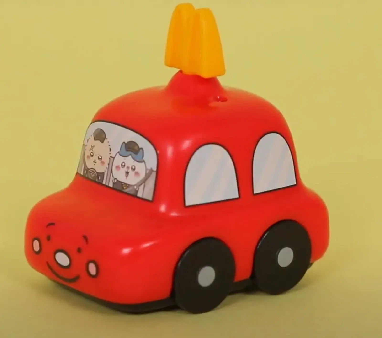 This is a special toy from the 2025 McDonald's Happy Meal collection, part of a collaboration with the popular Chiikawa franchise. This limited-edition toy features the character Racco, who is driving a small, red car. The toy is part of the "Part 1" series of the collection. It's a fun and unique item that doubles as a functional tool.